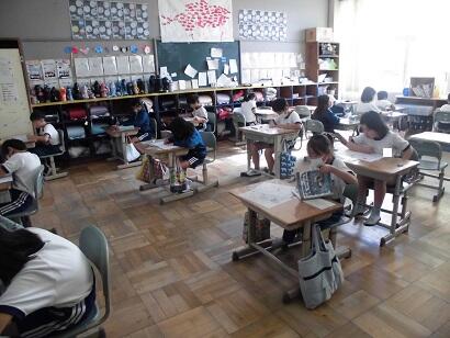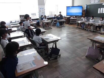 2年2組は、学級活動で学級会を行っていました。自分の考えをしっかりと発言しています。