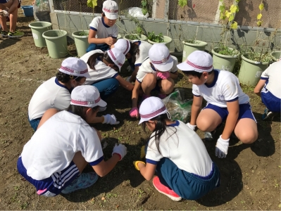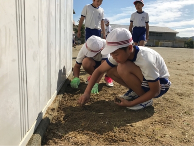 校庭の草むしりをしました。協力して行い、だいぶきれいになりました。