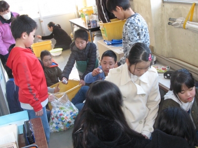 環境委員会はペットボトルキャップを集約していました。