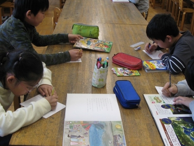 図書委員会はおすすめの本の紹介文を書いていました。