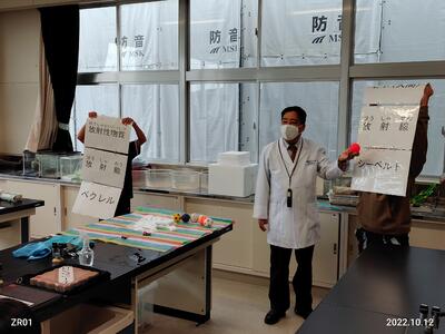 放射線教室では、放射性物質が地球上の様々なところに存在していることや、東日本大震災時の原子力発電所事故の放射性物質汚染による被害、放射性物質がもたらす危険性等、たくさんのことを学びました。