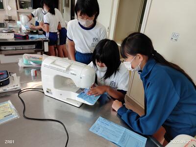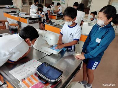 友達と協力し合って、カラ縫いをしたり、練習用布を使いまっすぐ縫うことができるか試してみました。