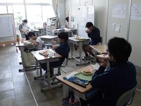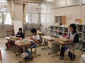 今日は、6年生の授業の様子を紹介します。6年1組は、音楽室で合奏の練習に取り組んでいました。11月にある「ふくしま学校行こう週間」でお家の方にぜひ聞いてほしいと、練習に熱が入っていました。「ルパン三世」等の曲を披露するようです。6年2組は、先週行われた理科の様子です。校内研究授業として行われた授業は、「水のはたらきによって地層ができるのか」というものです。実際に実験器具を使い、川の流れる水を想定して行いました。水のはたらきによって運ばれた土は、粒の大きさや種類によって堆積の順序が違って地層となっていることを学びました。給食は、くすのき学級の様子です。今日は一汁二菜からなる「朝食モデルメニュー」でした。