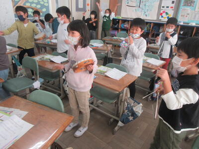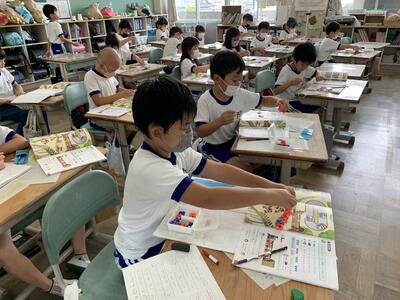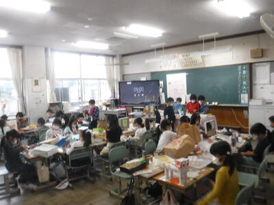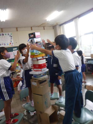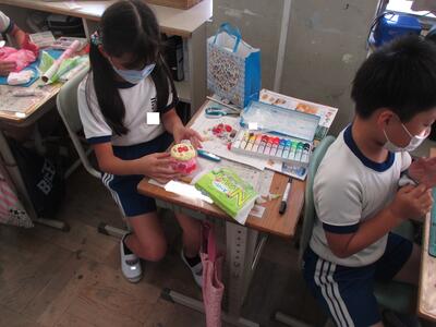 今日は、図画工作科の「空きようきのへんしん」という学習を行いました。