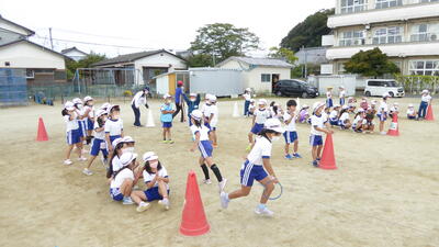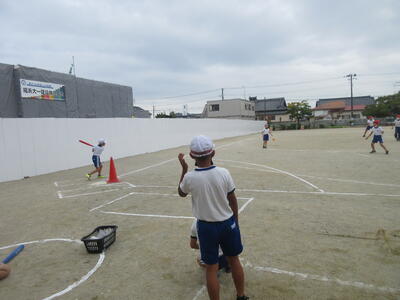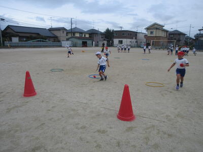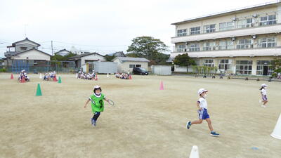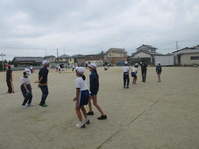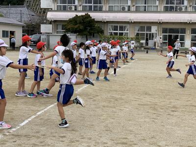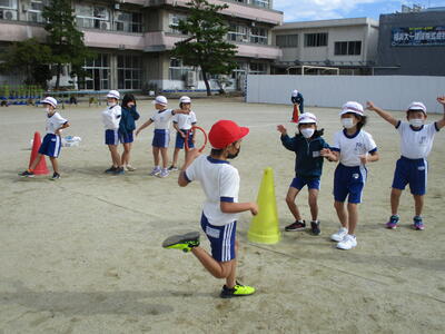 1、2組は、体育科で「折り返しリレー」の学習をしました。
