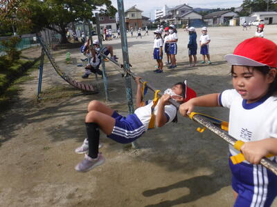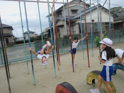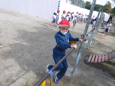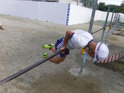 今日は、登り棒や鉄棒などの遊具に取り組んでいる子が多くいました。