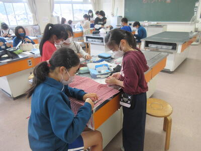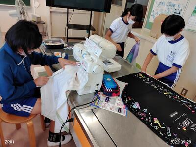 手芸クラブは、針を上手に使って、カバンを作っていました。