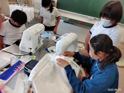 なかなか思うようにはいきませんが、互いに協力し合って、丈夫に縫うことができました。
