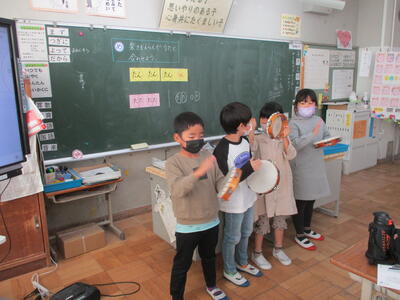 「森のたんけんたい」の曲に合わせて楽器を演奏しました。