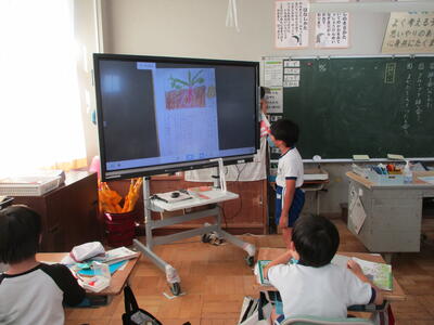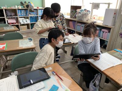 今日は、くすのき学級の様子を紹介します。くすのき1組は、2年生の算数科で個別に指導を受けていました。担任が1対1や少人数の指導を行うことで、確実に力をつけています。くすのき2組は、個別指導を行いながら6年生へ感謝の気持ちを伝える準備を行っていました。少しずつ計画的に進めているようです。くすのき3組は、1年生が算数科の学習でさくらんぼ型のたし算にチャレンジしていました。電子黒板を使うと、すぐに答え合わせができるので、子どもたちに好評です。くすのき4組は、5年生が社会科の自動車の学習、6年生が書写に取り組んでいました。集中している姿がすばらしいです。