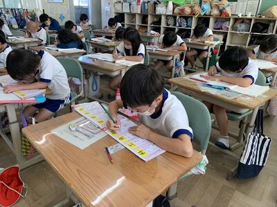 1年生が、先週のおもちゃ大会のお礼の手紙を書いて、届けてくれました。