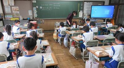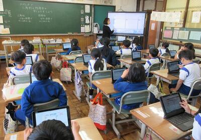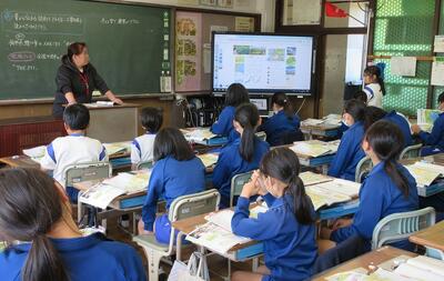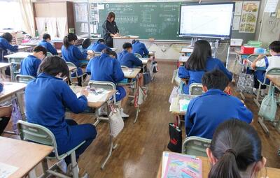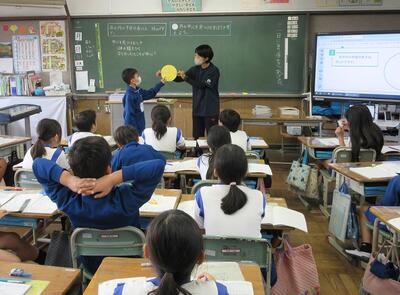 6年1組は、比例や理科の「てこ」の学習に取り組んでいました。