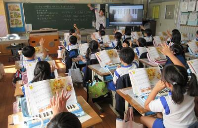 3年2組は、音楽でリコーダーの学習に取り組んでいました。