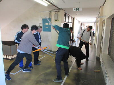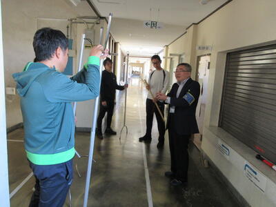 3校時目に防犯訓練が行われました。講師は、いわき東警察署生活安全課の方です。最初に、不審者対応の訓練を教職員が行いました。不審者への声のかけ方、さすまたの使い方など丁寧に教えていただきました。