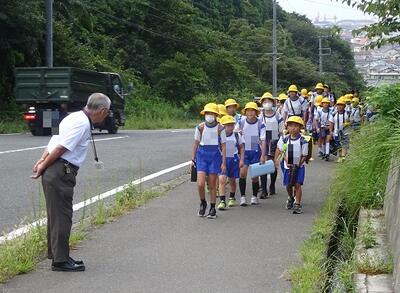 本校で力を入れていることの一つに「元気なあいさつ」があります。今日は、こころサポーターの山本さんが登校時にあいさつ運動をしてくださいました。子ども一人ひとりと目を合わせてあいさつをしてくれています。子どもたちもしっかりあいさつができていました。