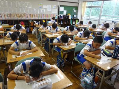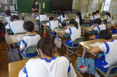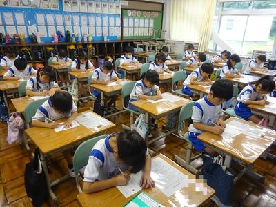 金曜日の朝は国語タイムが設けられています。子どもたちは、真剣に問題に取り組み、基礎基本の定着を図っていました。