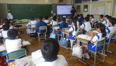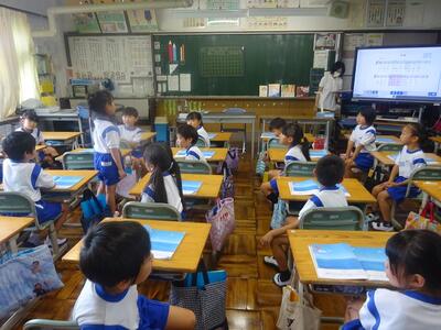 6年2組は、暑中お見舞いの手紙を書いていました。