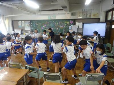 1年2組は、音楽でリズム打ちにチャレンジしていました。
