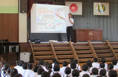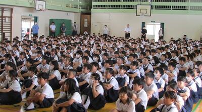 1学期の終業式が体育館で行われました。校長先生からは、「頭・心・体を鍛える」の視点で1学期にがんばってきたことについてお話がありました。