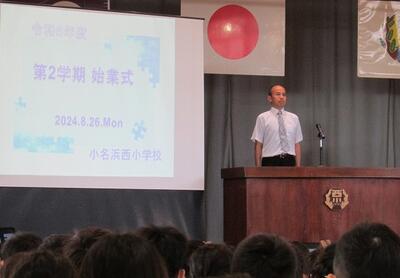 校長先生からは、パリオリンピックや2学期にがんばってほしいことが話されました。
