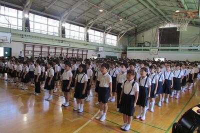 長い夏休みが終わり、今日から2学期がスタートしました。体育館では始業式が行われました。