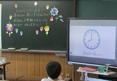 2年3組は、算数で時刻の学習に取り組んでいました。