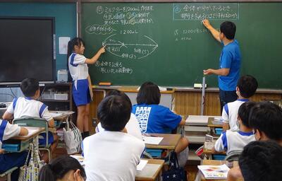 6年2組は、全体が分かっている時の部分の求め方を学習していました。