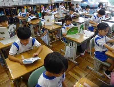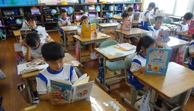 今日も子どもたちは元気に登校してきました。登校してきた子どもたちは、8時から読書タイムを行いました。
