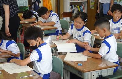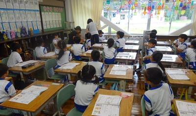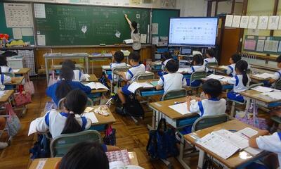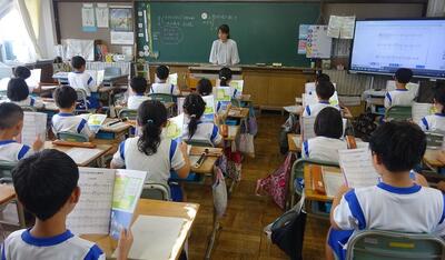 1年1組は、「海のようすを思い出しながら歌おう」の学習に取り組んでいました。
