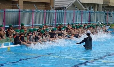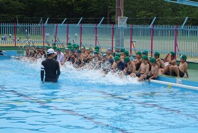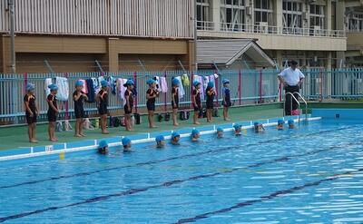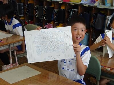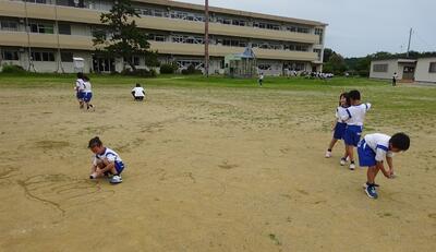1年生は、プールに入ったり、校庭に水で絵を描いたりしました。