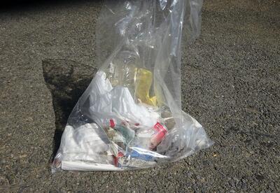坂の下まで行って戻ってみると、袋にこれだけのごみが集まりました。
