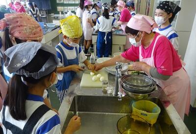 26日・27日と5年生の調理実習にボランティアの方々が来校し支援してくださいました。小名浜公民館とのタイアップで実現した内容でした。一班ごとにボランティアの方に入っていただき、包丁の使い方や卵のゆで方などを丁寧に教えていただきました。おかげで青菜・じゃがいも・卵の料理を上手に行うことができました。ボランティアの方々、ありがとうございました。