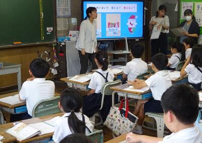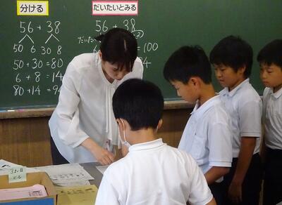 5校時目は、3年生の研究授業が行われました。福島県教育庁義務教育課指導主事をお迎えしての研究授業でした。単元名は「数をよく見て暗算で計算しよう」です。日常生活と関連づけながら導入が行われました。