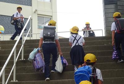 今日も子どもたちは元気に登校してきました。ある班の女の子が鼻血を出していました。「大丈夫?」と声をかけると「あ、大丈夫です。保健室に連れて行きます。」と高学年の男子が答えてくれました。階段をのぼっていく姿を見ると、その高学年の男子が鼻血をだしていた女の子の荷物を全部持ってあげていました。心がほっとする光景でした。