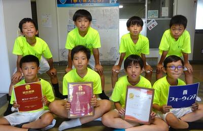 放課後に多くの子どもたちが賞状をもって訪問してくれました。先日行われた福島県青少年ドッジボール大会ふくドッジ2024の市大会において見事総合優勝を果たしたメンバーです。チーム名は、西小の西を入れて「西フォーウインズ」です。6年生1名、5年生7名で戦ったそうです。