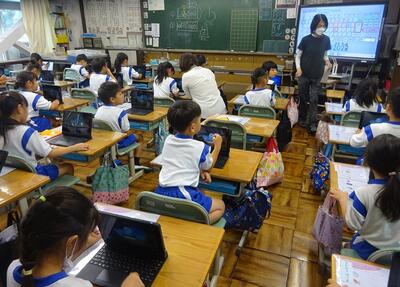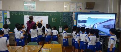 1年2組は、タブレットの使い方を教えてもらっていました。