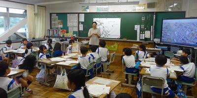 2年2組は、町たんけんで見聞きしてきたことを模造紙にまとめていました。