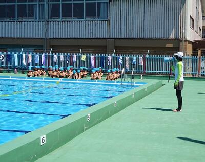 1年生の皆さん、たくさんプールに入って水に慣れていってくださいね。