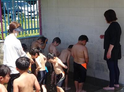 肩まで水に入りました。子どもたちは「気持ちいい~」と大喜びでした。