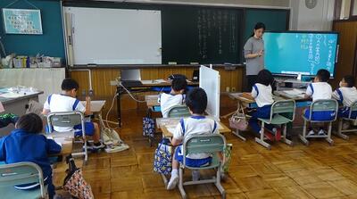 1年2組は、国語でわけを伝える言葉を使って答える練習をしていました。