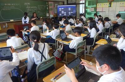 5年1組は、二酸化炭素を減らすためにはどうすればよいか調べていました。