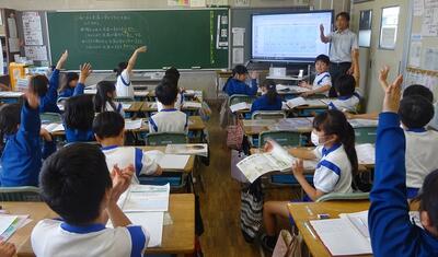 4年2組は、国語「アップとルーズで伝える」の読み取りをしていました。