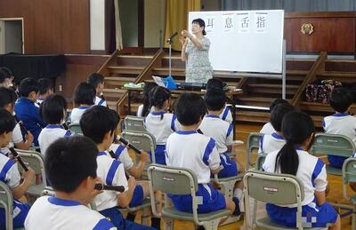 3年生を対象としたリコーダー講習会が体育館で行われました。講師は、太田先生です。子どもたちは、はじめてのリコーダーなので興味津々の様子でした。先生からは、息の出し方、指のおさえ方、舌の使い方などを教えてもらいました。