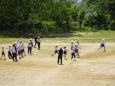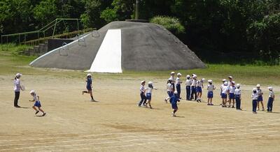 3年生は、校庭で体育を行っていました。