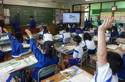 5年1組は、学級活動で「5年1組の合い言葉」を話し合っていました。