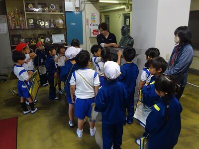 さすが2年生です。「ここは、放送室です。」などと説明しながら1年生に教えることができました。