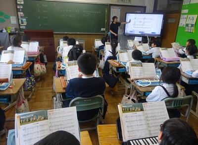 2年2組は、音楽で「おお牧場はみどり」を元気に歌っていました。