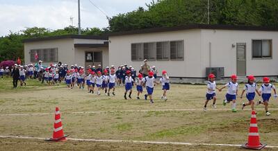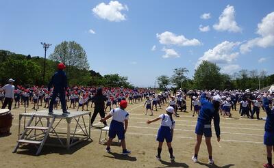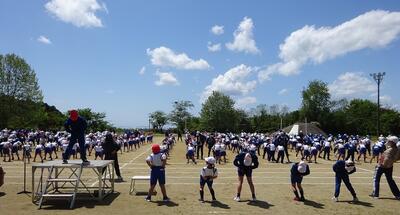 5月11日(土)の運動会に向け、全体練習が始まりました。下の写真は、ラジオ体操の様子です。運動会まで残りわずかですが全力で練習している子どもたちです。
