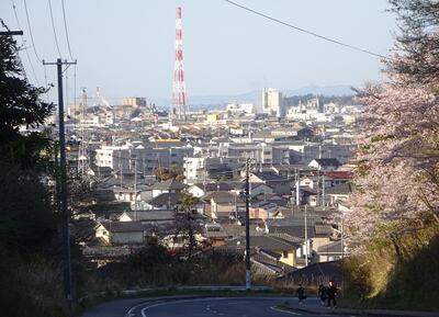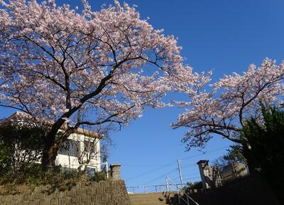 学校周辺の桜が見頃を迎えています。正門前の桜です。