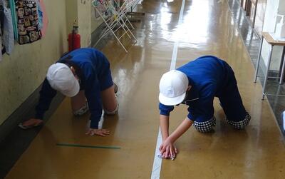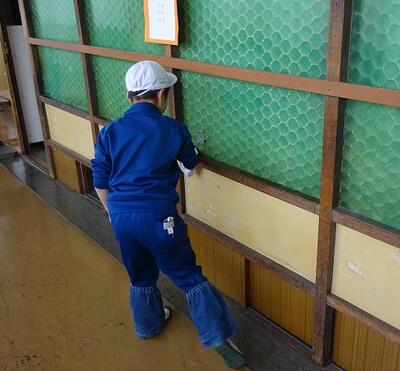 給食後にお掃除がありました。本校の自慢の一つに無言清掃があります。どの場所も静かに力を入れて校舎をきれいにしていました。雑巾かけを両手で行っています。ステキです。
